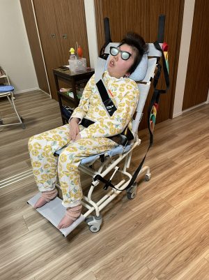 (お母さま)『それまではヘルパーさん、訪問看護師さんと一緒に抱っこで全てやってましたが体重も重たくなって大変になってきました。そのような状況で安全に入浴するためつるべーを使い始めました。』 (現在、身長140㎝、体重30kg。当時は体重27kgくらいでした。)