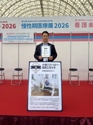 インテックス大阪開催バリアフリー2026にて、弊社の「介護リフトつるべーBB1セット」が「プラネット福祉用具アワード2026」の〝支援力”一つ星を受賞いたしました。
